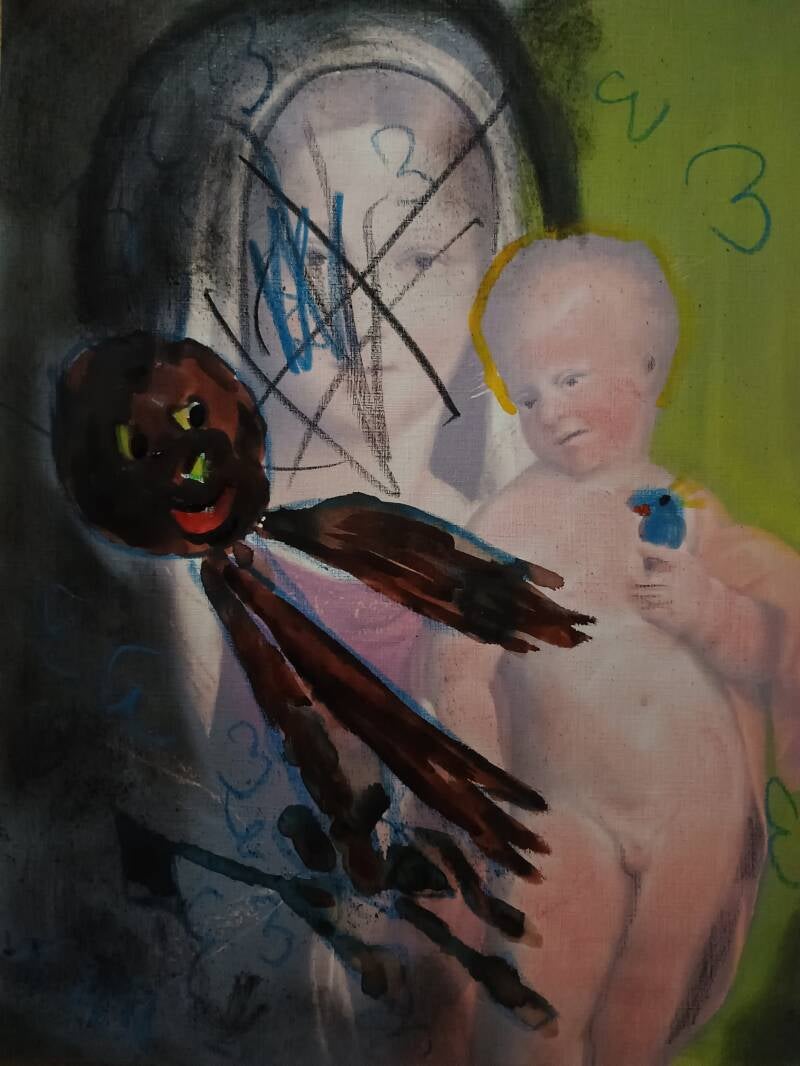 Outlines/ figures in oil pastel by Tim, Alex; Mixed media by Jimmy