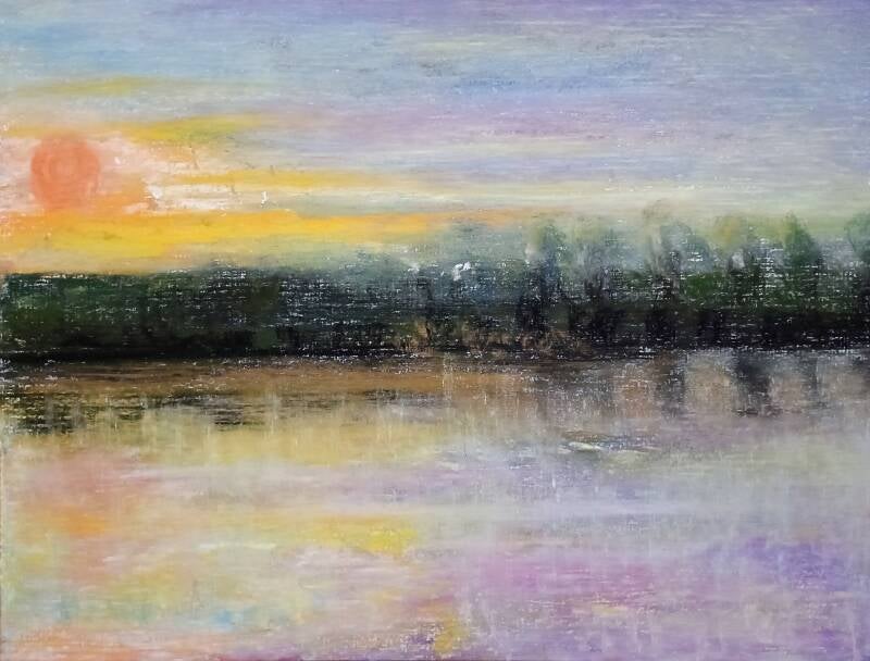 Sunset at Veluwemeer Nunspeet (NL) (pastel on paper) 29,7 x 42 cm