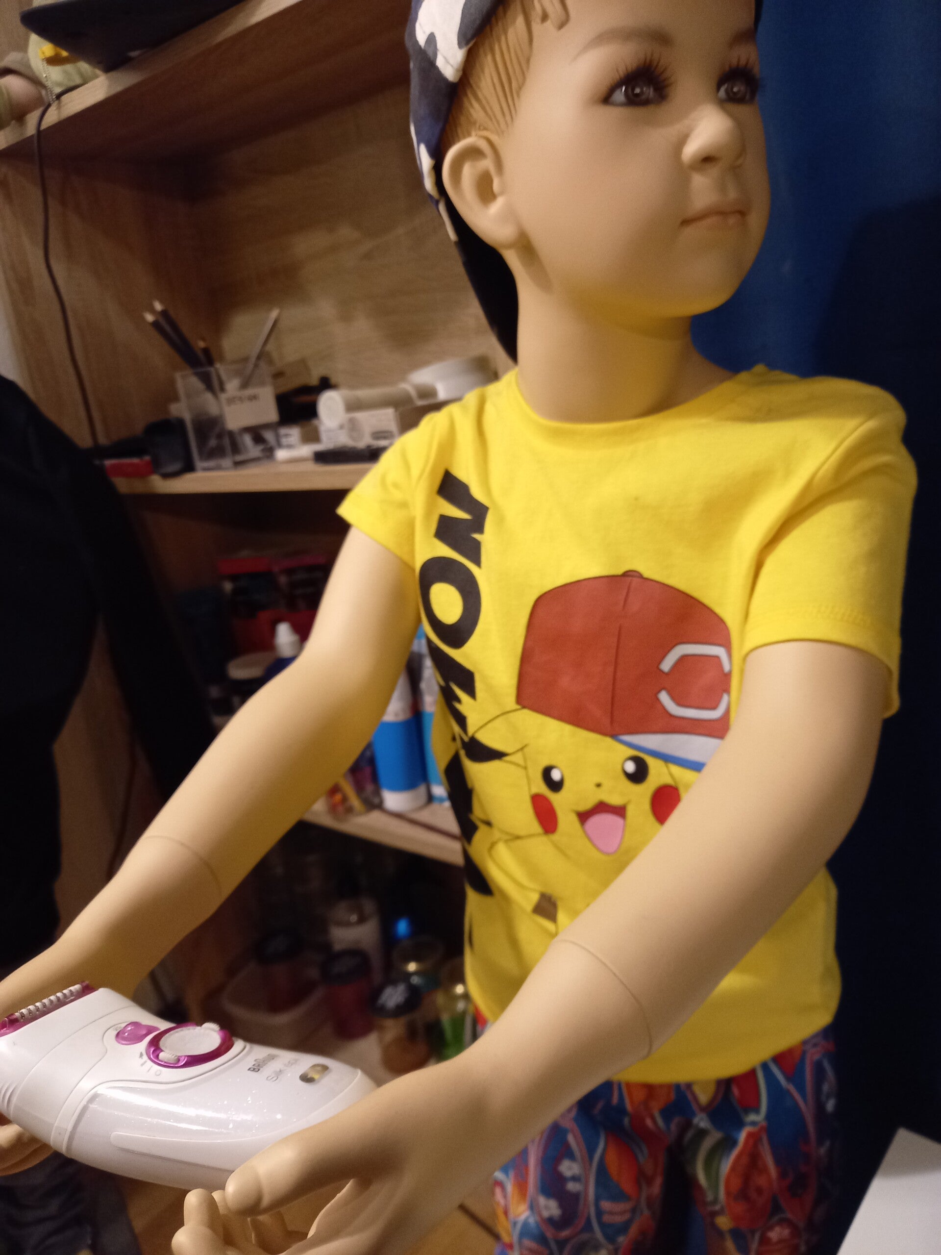Identity mix of selfie (52 years old) and pastel drawing of a 10 year old boy