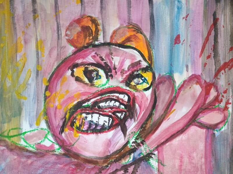 Description: At three years old, while in residential home, I went on a group walk and saw a beautiful rose in a meadow. As I reached for it, a horse came running to me, I hurried back in fear and barbed wire slashed my head from front to back. Despite the blood streaming down my face and intense pain, the staff forbade me from crying and forced me to complete the entire walk. My reward for staying a group member and hiding my pain was a lollipop.